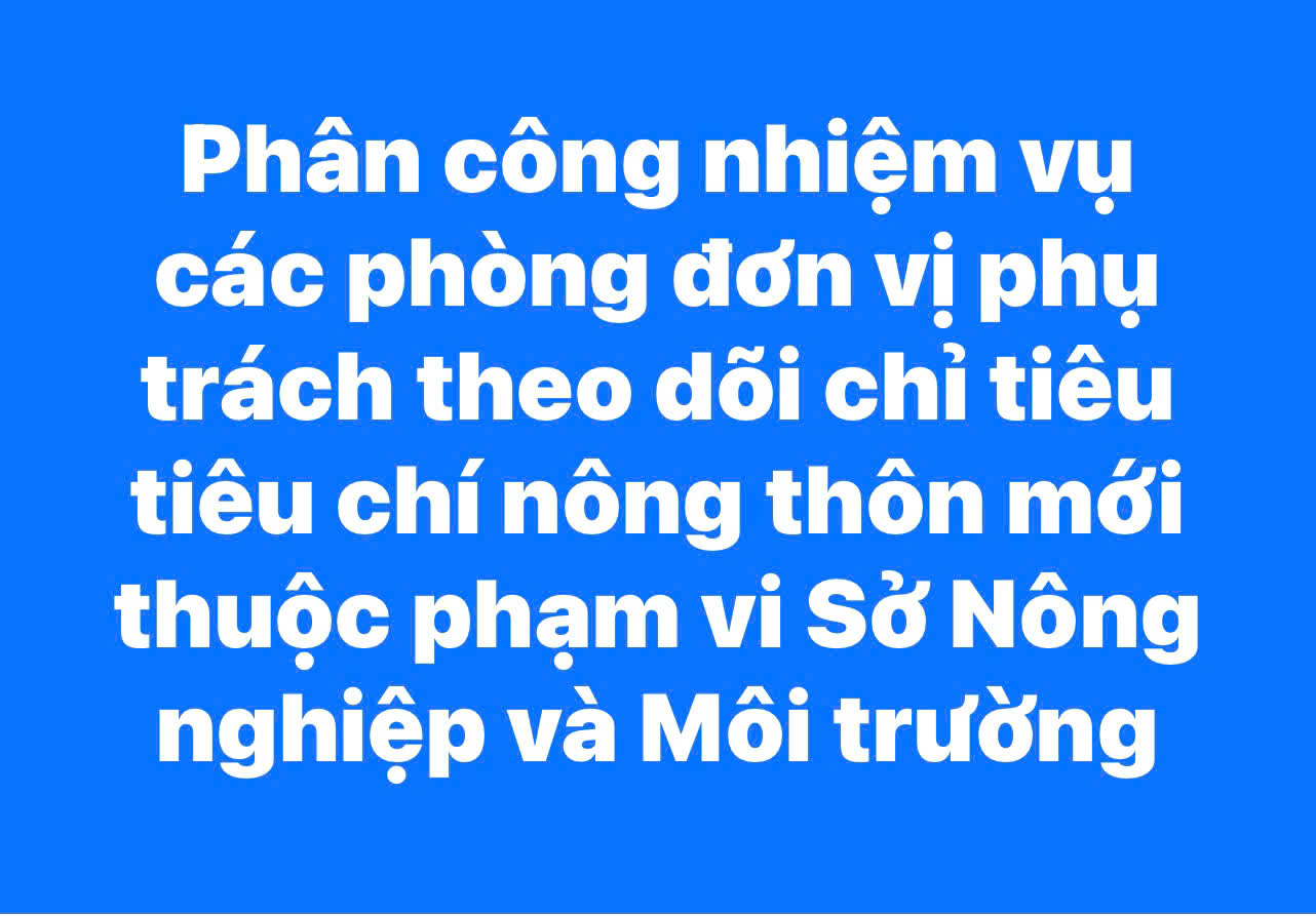 Trên cơ sở chức năng, nhiệm vụ, Sở đã phân công cụ thể cho từng phòng, đơn vị. Trong đó, Chi cục Phát triển nông thôn và Quản lý chất lượng nông lâm sản, thủy sản được giao phụ trách nhiều tiêu chí trọng tâm; Chi cục Thủy lợi và Tài nguyên nước phụ trách các tiêu chí liên quan đến hạ tầng thủy lợi; Phòng Môi trường và Biến đổi khí hậu phụ trách các tiêu chí về môi trường; các đơn vị chuyên ngành khác như chăn nuôi, trồng trọt, kiểm lâm, khuyến nông… đảm nhận các tiêu chí theo lĩnh vực quản lý.