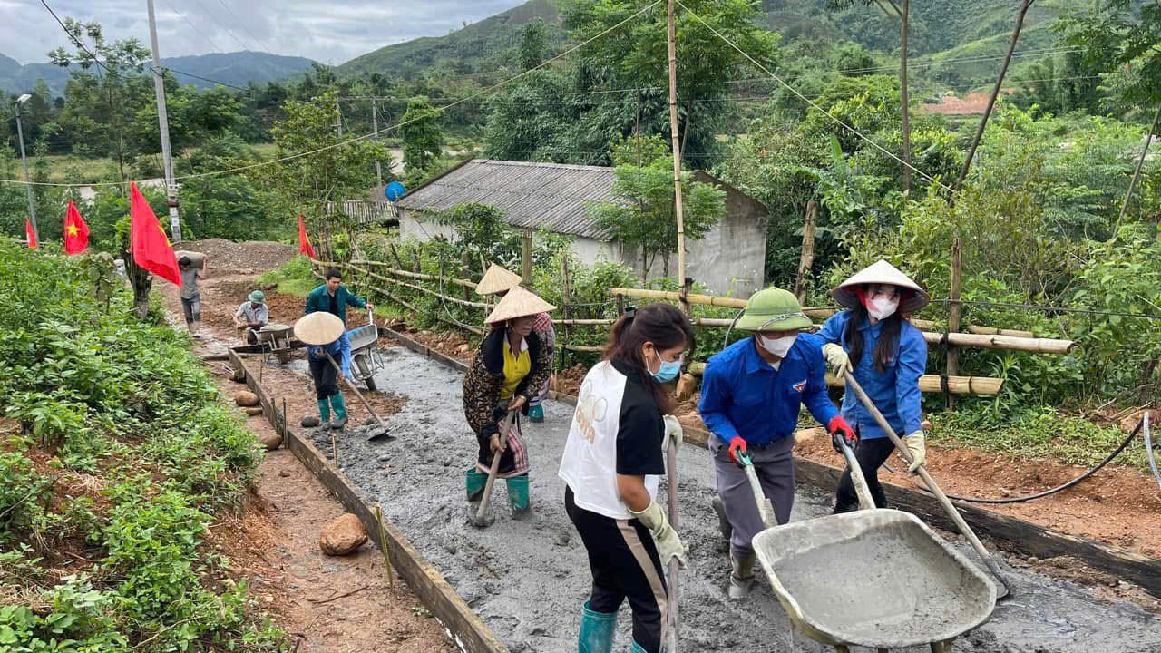 Người dân xã Mường Than tích cực góp ngày công làm đường bê tông nội bản